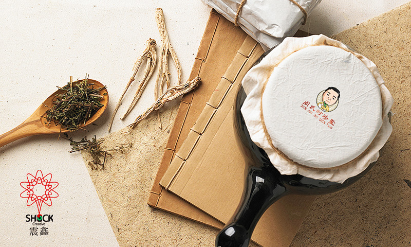 行业的特点,图形简练清晰,在手绘完面部基本轮廓后,我们选择搭配传统大夫的衣领点缀“中国味道”体现行业庄严、明朗、健康、严谨赋予深厚的中医药传统文化理念,两侧选择人参花,人参被视为百药之王,人参又花是我国名贵药材之瑰宝,来体现企业对优质草本和品牌的重视。